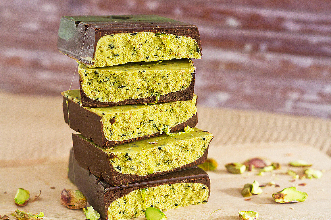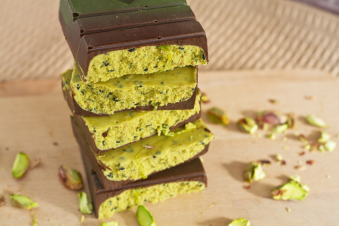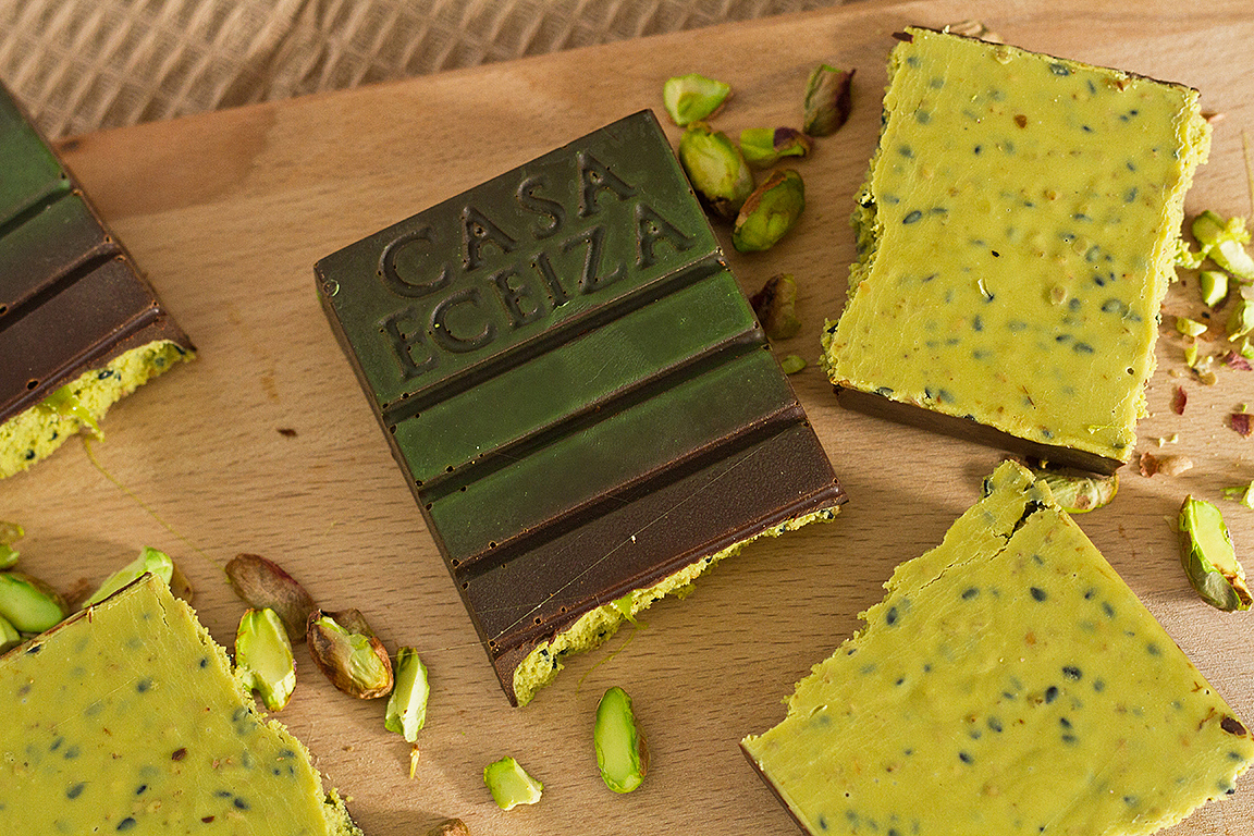 Delicioso turron de pistacho y chocolate de casa Eceiza.